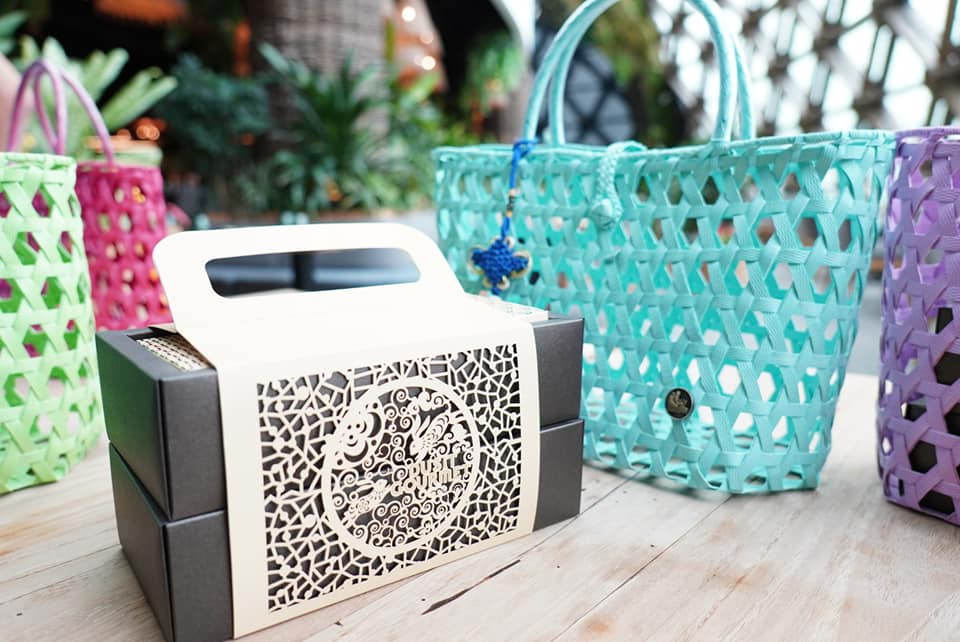 Dusit Thani Laguna Singapore recently come out with a Thai Milk Tea flavoured Mooncake package with Sarawak Penan Women Project (PWP) handcrafted bag. It is not the usual Penan bag that you will see in STATOS Gallery, as it is specially designed for Dusit Thani, named Carla Bag.